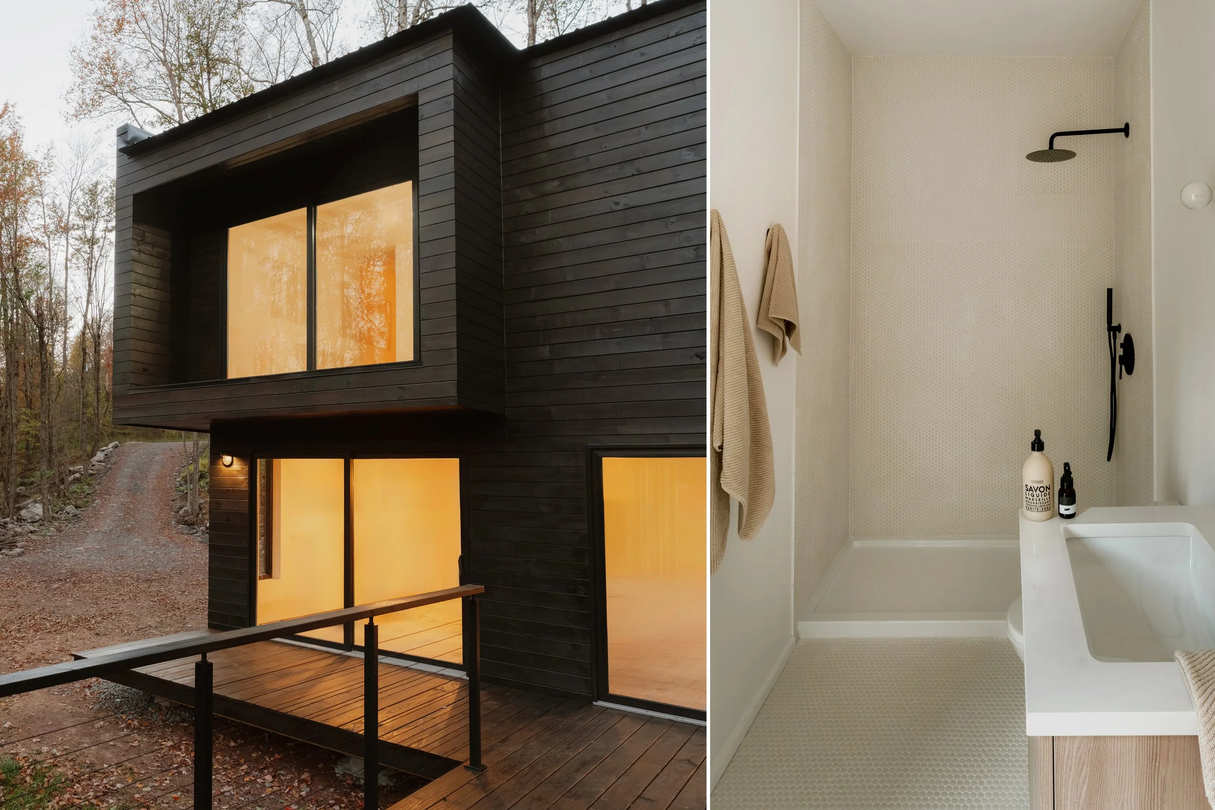 The Forest Edge house is the fifth solar powered house built by Edifice Upstate in the West Catskills of New York State. The house is a 1500 sqft two story, 3 bedroom, 2 full bath powered by solar energy. Nested on a 3 acre parcel of forest, the house is clad in FSC certified natural pine, boasts full floor radiant heating, an open living, kitchen and dining plan and a 25’ cantilevered steel deck reaching into the canopy of the surrounding tree line. The house is powered by 24 Monocrystalline solar panels on a 15K Sol-Ark inverter and Lithium Ion LifePo battery bank generating 38kwh of daily electricity.